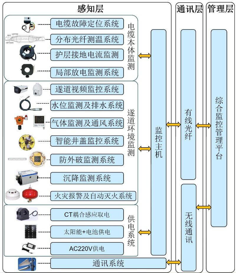 電纜隧道在線監控系統通過邊端設備,采用以太網接口MQTT協議接入物聯管理平臺,對整個隧道監控與管理。結合大數據技術和智能網絡算法??煞治龊屠镁址?,護層,測溫等多種數據源,運用數據趨勢分析,人工智能學習,神經網絡診斷等高新技術手段,對電纜的運行狀態進行診斷分析,并輸出電纜狀態評價結果,為電力巡檢工作提供技術輔助和數據支撐,實現高端智能電網全面監測。