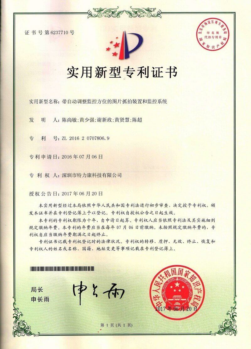 - 帶自動調整監控方位的圖片抓拍裝置和監控系統認證
