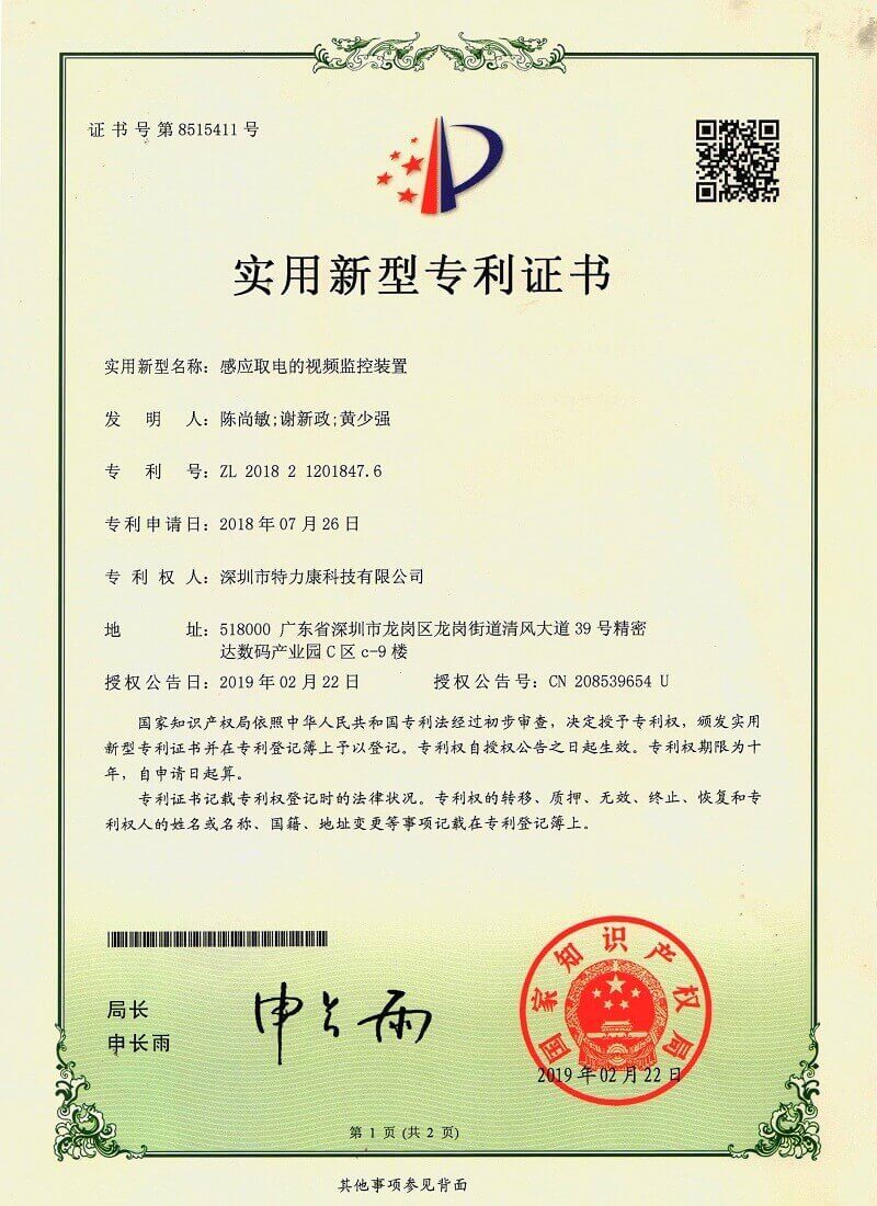 - 感應取電的視頻監控裝置認證